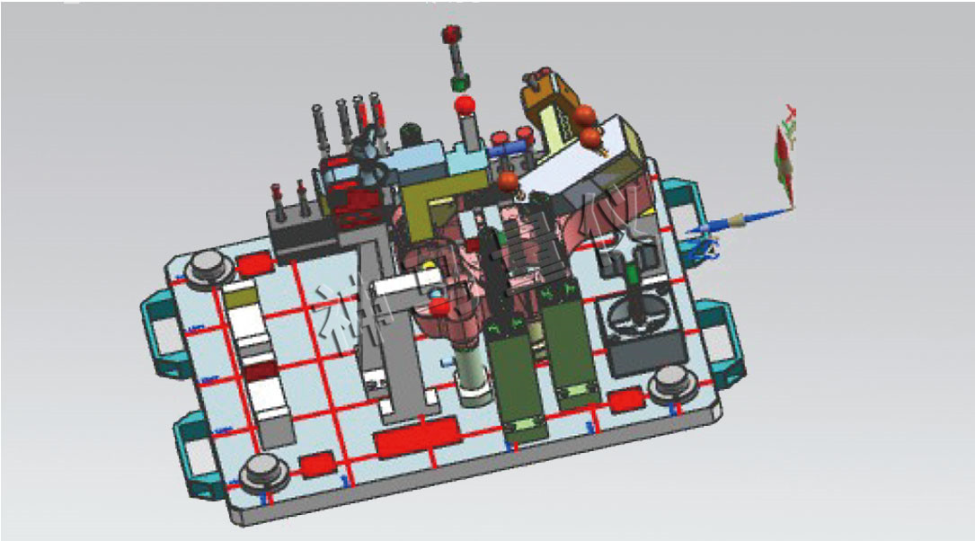 2、圖紙有明確的ABC基準(zhǔn),這時(shí)需要了解主基有沒(méi)有實(shí)體要求,結(jié)合主基準(zhǔn)的公差和位置度公差的要求,設(shè)計(jì)相應(yīng)的主基準(zhǔn)定位方式(一般采用彈性錐銷(xiāo)或者圓柱銷(xiāo)),主基準(zhǔn)盡量采用固定式,輔助基準(zhǔn)一般情況下采用插拔式,可以設(shè)計(jì)成削邊錐銷(xiāo)或者菱形錐銷(xiāo);